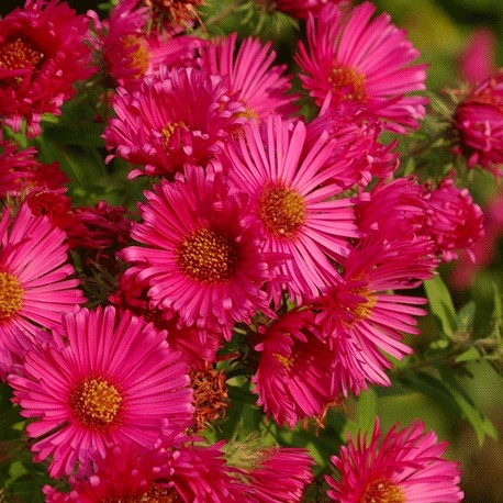 Astra novi-belgii v červené barvě je výrazná podzimní trvalka, která rozzáří každou zahradu svými množstvím drobných, sytě červených květů se žlutým středem. Kvete od srpna až do října a je skvělým zdrojem potravy pro včely a motýly v období, kdy už mnoho jiných rostlin nekvete.