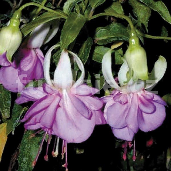 Fuchsie ‘Blue Mirage’ je nádherná převislá odrůda, která zaujme svými elegantními květy s bílým kalichem a světle fialovou plnou, bohatě nabíranou sukní. Rostlina tvoří dlouhé převislé výhony, které se během sezóny hustě pokrývají květy, a vytváří tak působivé dekorativní efekty, zejména v závěsných nádobách a truhlících. Kvete bohatě od června až do podzimu a vyžaduje polostinné stanoviště, chráněné před prudkým poledním sluncem. ‘Blue Mirage’ je oblíbená pro svou spolehlivost, dlouhou dobu kvetení a jemné, pastelové barvy. Dodáváme ji jako dobře prokořeněnou rostlinu v květináči o průměru 9 cm, připravenou k okamžitému pěstování.