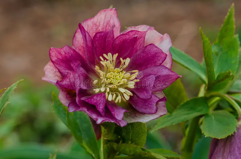 Čemeřice 'Double Ellen Flash' je nápadná plnokvětá odrůda s dvoubarevnými květy – světlý základ (krémový až jemně růžový) doplňuje výrazné tmavé žilkování a kontrastní střed. Tento efekt dává rostlině jedinečný vzhled, který přitahuje pozornost právě v období, kdy většina rostlin nekvete. Objevuje se velmi brzy – často už od prosince do března. Tvoří kompaktní trsy stálezelených listů a dorůstá výšky kolem 30–40 cm. Nejlépe prospívá v polostínu až stínu, v humózní, dobře propustné a mírně vlhké půdě. Je mrazuvzdorná a vhodná pro výsadbu pod stromy, keře, do stinných záhonů i větších nádob.