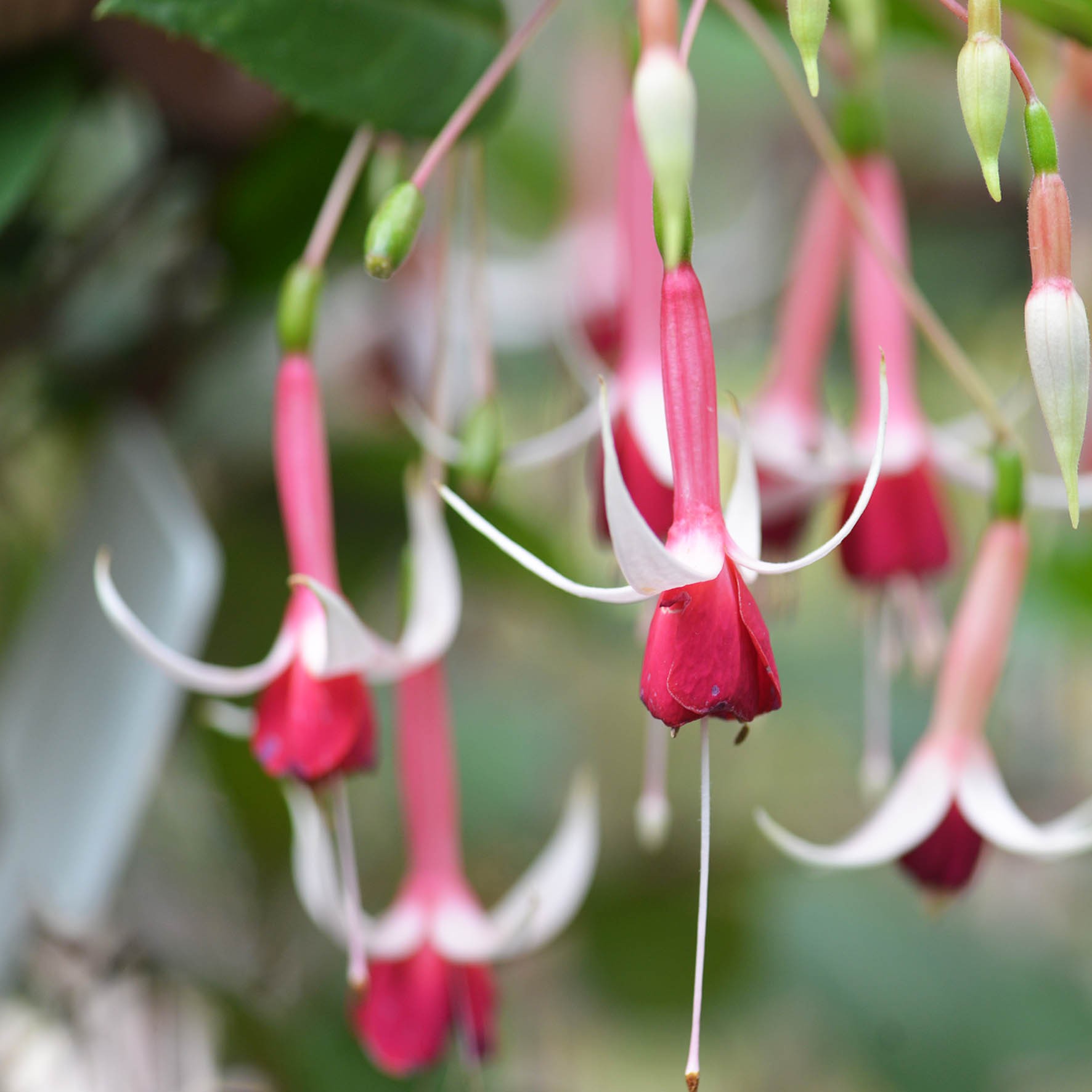 Fuchsia ‘Checkerboard’ (Walker-Jones, USA, 1948) je nápadná vzpřímená fuchsie s jednoduchými dlouhými květy v kontrastním dvoubarevném provedení. Kalichy jsou čistě bílé až lehce narůžovělé, zatímco sukénka je sytě červená, díky čemuž květy opravdu vynikají a působí jako malé zahradní šachovnice – odtud i její jméno. Rostlina má vzpřímený růst, kvete bohatě od konce května až do konce října a skvěle se hodí do květináčů nebo truhlíků Pro svůj bujný vzrůst je vhodná pro tvarování stromků. Velmi odolná odrůda, která je velmi vhodná pro začínající sběratelé. V období kvetení doporučujeme pravidelné 1× týdně hnojení hnojivem s vyšším obsahem draslíku, které podpoří vitalitu a množství poupat. Vyžaduje polostinné stanoviště chráněné před ostrým poledním sluncem, pravidelnou zálivku a dobře propustný substrát. Na zimu je nutné přenést rostlinu do bezmrazého prostoru. Dodáváme v květináči o průměru 9 cm, dobře prokořeněnou.