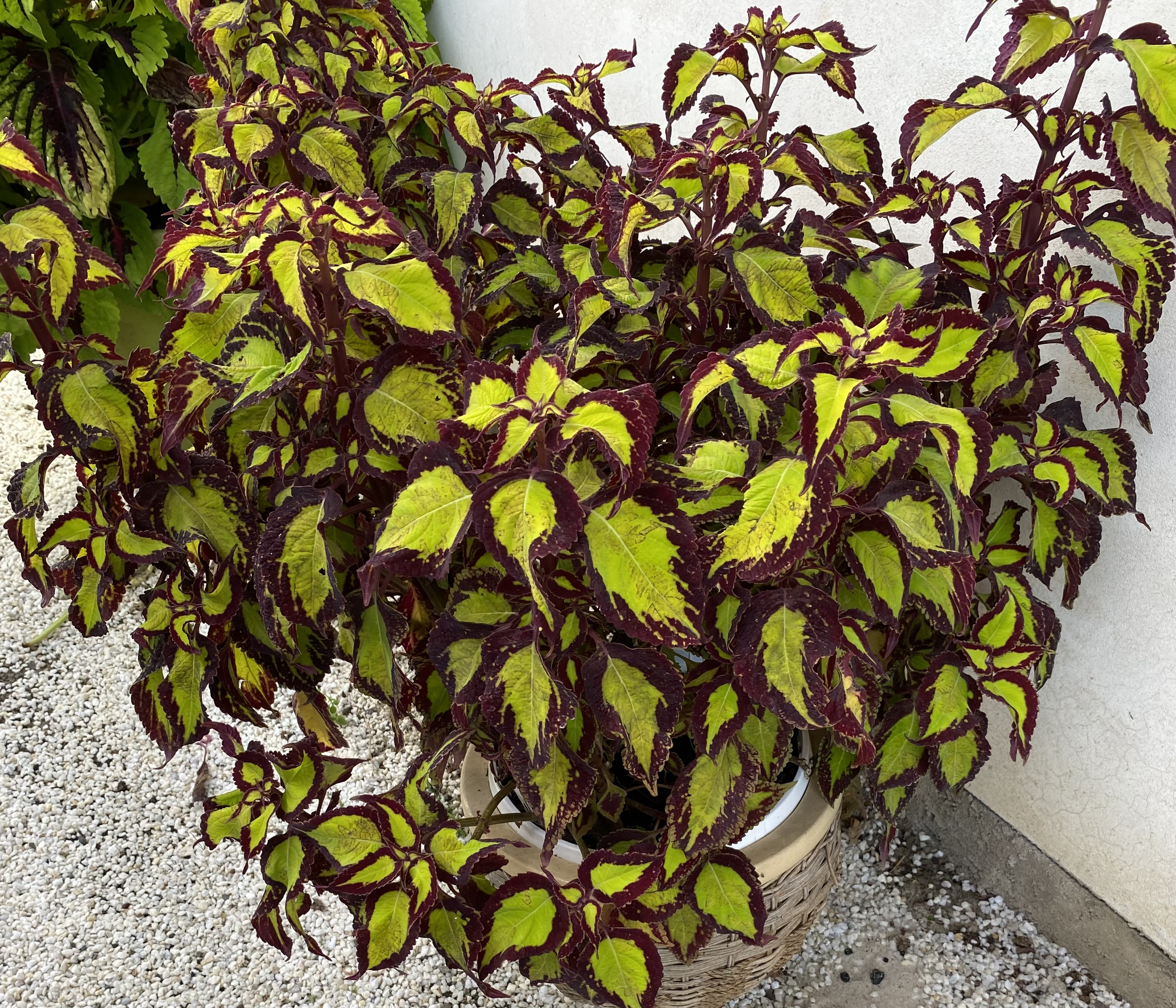Africká kopřiva Coleus – Copa Saturn je působivá okrasná listová rostlina, která okouzlí kontrastními barvami svých listů. Tmavě fialové jádro listů je lemováno svěží zelení, což vytváří elegantní a nápadný vizuální efekt. Copa Saturn tvoří kompaktní, husté keříky, které se výborně hodí do truhlíků, závěsných košů, květináčů i zahradních záhonů. Díky svému atraktivnímu zbarvení je ideální jako solitér, ale skvěle doplní i smíšené výsadby.
