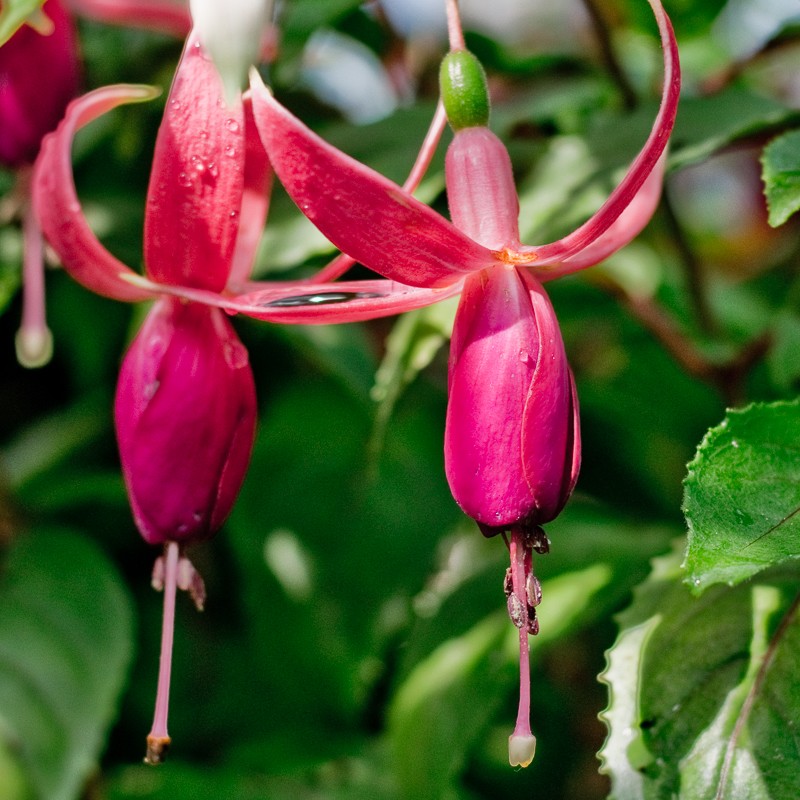 Fuchsie ‘Coral’ je půvabná převislá odrůda, která okouzlí svým bohatým kvetením a stylovým vzhledem. Tvoří volně splývající větve, na nichž se objevují dlouhé poloplné květy s korunkou v korálové barvě a sukní, která ladí do intenzivního fialového odstínu — spolu vytvářejí výrazný, dekorativní efekt. Díky převislému růstu je rostlina ideální pro závěsné květináče nebo truhlíky, kde její květy mohou efektivně vyniknout. Doporučujeme stanoviště v polostínu až světlém, ale chráněné před nejprudším poledním sluncem; substrát by měl být humózní, dobře propustný a udržovaný rovnoměrně vlhký — přemokření je nevhodné. Pravidelné odstraňování vybledlých květů pomůže podpořit další období kvetení a udržet rostlinu zdravou.