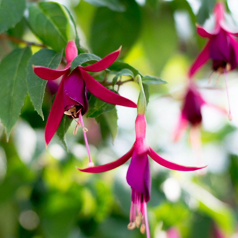 Fuchsie Delta’s Pim je vzpřímeně rostoucí a kompaktní odrůda, ideální pro nádobové pěstování nebo jako výrazná rostlina na terase či záhonu. Kvete jednoduchými květy — korunka květu v tmavě červené barvě a sukně potom ve bordó tónu, čímž vzniká elegantní a sytý barevný efekt. Rostlina je popsána jako „jednoduchá, tmavá, bohatě kvete“. Doporučujeme stanoviště se světlým až polostinným osvětlením, chráněné před nejsilnějším poledním sluncem. Substrát by měl být humózní, dobře propustný a udržovaný rovnoměrně vlhký — dlouhodobé přemokření je nevhodné. Pravidelné odstraňování vybledlých květů podpoří další vlnu kvetení a udrží rostlinu v dobré kondici. V době vegetace je nutné ji každý týden přihnojovat hnojivem s vyšším obsahem draslíku. Pokud si u nás uděláte objednávku nad 1000 Kč, pošleme Vám speciální hnojivo zdarma. Rostliny zasíláme v květináči o průměru 9 cm, dobře prokořeněné.