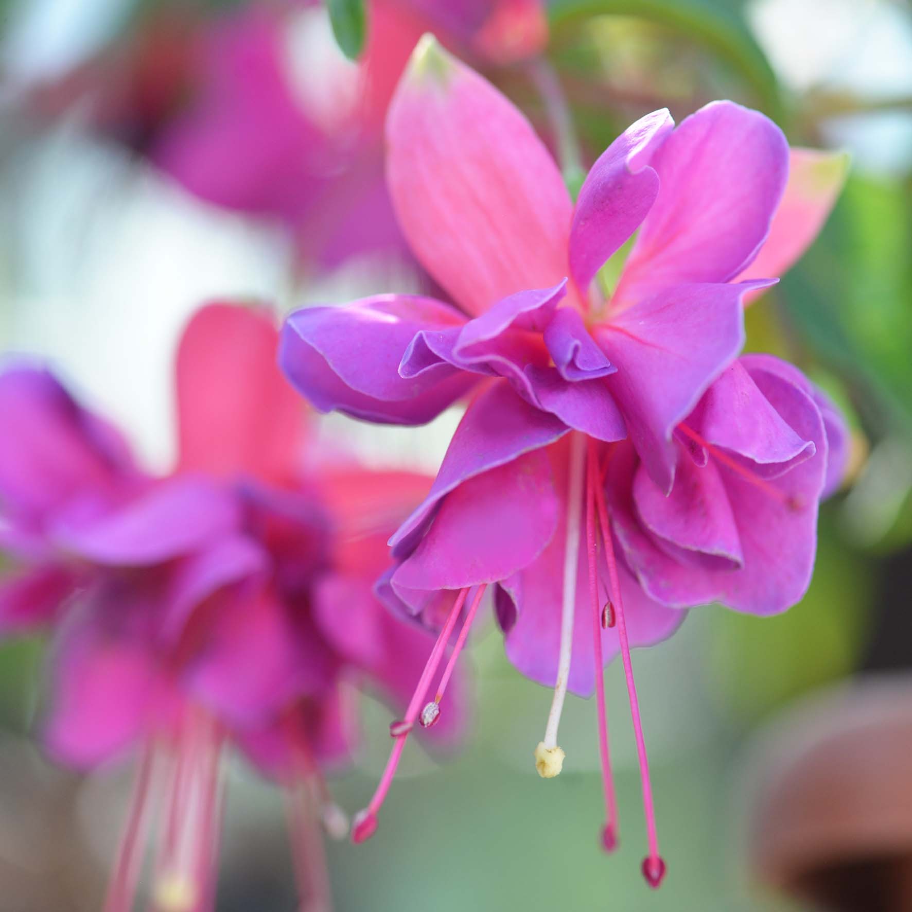 Jollies La Grande Jurançon Fuchsie je atraktivní okrasná odrůda známá svými velkými a bohatými květy v kontrastní kombinaci sytě červených kališních lístků a fialové koruny. Kvete nepřetržitě od jara až do podzimu a je skvělou volbou pro pěstování v závěsných nádobách, truhlících či na terasách, kde vytváří nápadný barevný efekt. Rostlina nejlépe prospívá v polostinném stanovišti, kde je chráněna před přímým sluncem, a vyžaduje pravidelnou zálivku. Díky své velikosti a intenzivním barvám působí dominantně a dodá prostoru romantickou i elegantní atmosféru.