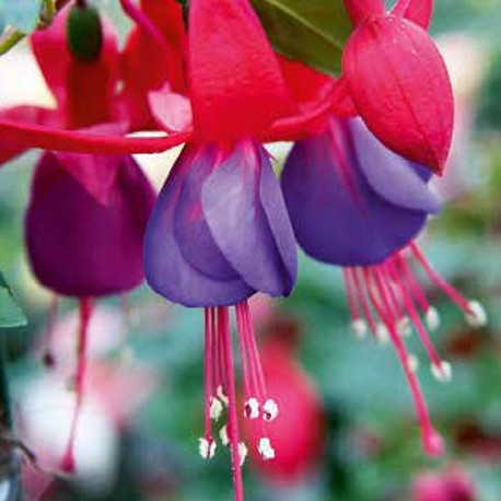 Red-Blue je kompaktní vzpřímená fuchsie, ideální pro zahrady, terasy či balkony, kde vytvoří půvabný keřík. Každý květ přitahuje oko kombinací sytě červené koruny a jemně světle modré poloplné sukénky, což vytváří elegantní a neobvyklý barevný kontrast. Rostlina kvete pravidelně po celé léto a svou strukturou se hodí i do menších prostorů. Pro bohaté kvetení ji dopřejte pravidelnou zálivku a hnojení vhodným hnojivem s vyšším obsahem draslíku. Dodáváme ji v květináči o průměru 9 cm, zdravou a připravenou k dalšímu pěstování, aby mohla zdobit vaši zahradu svými živými barvami.