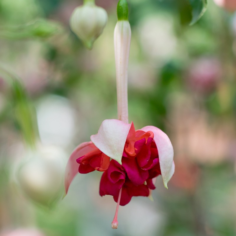 Fuchsie ‘Gislanie’ je silně převislá odrůda s dlouhými a elegantními květy, jejichž bílé okvětní lístky kontrastují s plnou červeno-fialovou sukní. Tento dramatický barevný kontrast působí velmi dekorativně a zajišťuje výrazný efekt v závěsných nádobách, truhlících nebo květinových koších. Rostlina má bohatý převislý růst, který podporuje hojné kvetení po celé léto. Rostliny dodáváme v květináči o průměru 9 cm, dobře prokořeněné a připravené k dalšímu růstu. V době vegetace doporučujeme pravidelné hnojení 1× týdně hnojivem s vyšším obsahem draslíku. Při objednávce nad 1000 Kč obdržíte speciální hnojivo jako dárek zdarma.