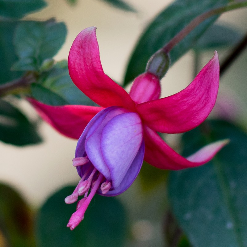Fuchsia ‘Jenny Sorensen’ je působivá a spolehlivě kvetoucí odrůda, která vynikne svým jemným barevným přechodem — od světlé lila-růžové až po výraznější fialový tón na okrajích koruny květu. Habit je polopřevislý, což znamená, že její výhony mohou decentně viset či se rozkládat – ideální do truhlíků, závěsných košů i na okraje nádob a teras. Dle záznamu u Royal Horticultural Society (RHS) dosahuje výšky cca 0,5–1 m a šířky kolem 0,1–0,5 m.