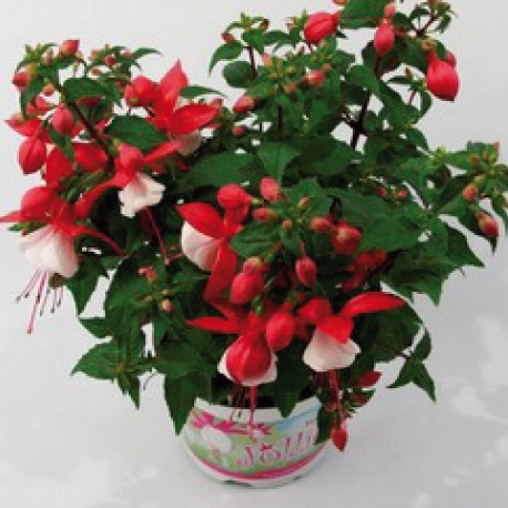 Fuchsie Jollies Cassis je okouzlující převislá odrůda s kompaktním růstem a plnými květy v kontrastní červeno-bílé kombinaci. Rostlina tvoří bohaté převisy, které se během léta doslova pokryjí květy, a krásně vynikne v závěsných nádobách, truhlících nebo jako dekorativní převis na okrajích záhonů. Květ je výrazný a elegantní, což dělá z Jollies Cassis ideální volbu pro všechny, kdo hledají působivou a stále kvetoucí fuchsii. Rostlina kvete nepřetržitě a dodá každému prostoru živé a nápadné barvy.