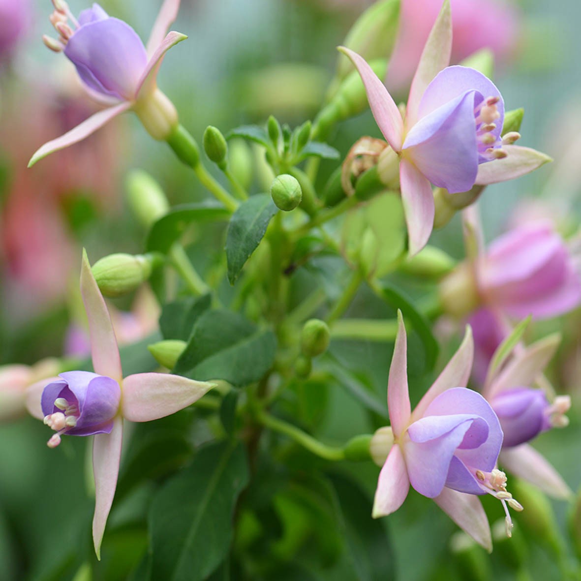 Love’s Reward Fuchsie je půvabná okrasná rostlina s bohatými květy v jemných světle fialových tónech, které kontrastují se sytě zelenými listy. Kvete od jara až do podzimu a vytváří elegantní keřík, ideální do závěsných nádob, truhlíků či na terasy. Rostlina snese slunější stanoviště , preferuje pravidelnou zálivku a vhorkých dnech rosení. Díky svému jemnému a romantickému vzhledu vnese do prostoru svěžest, barvu a eleganci vhodnou pro moderní i klasické aranžmá.