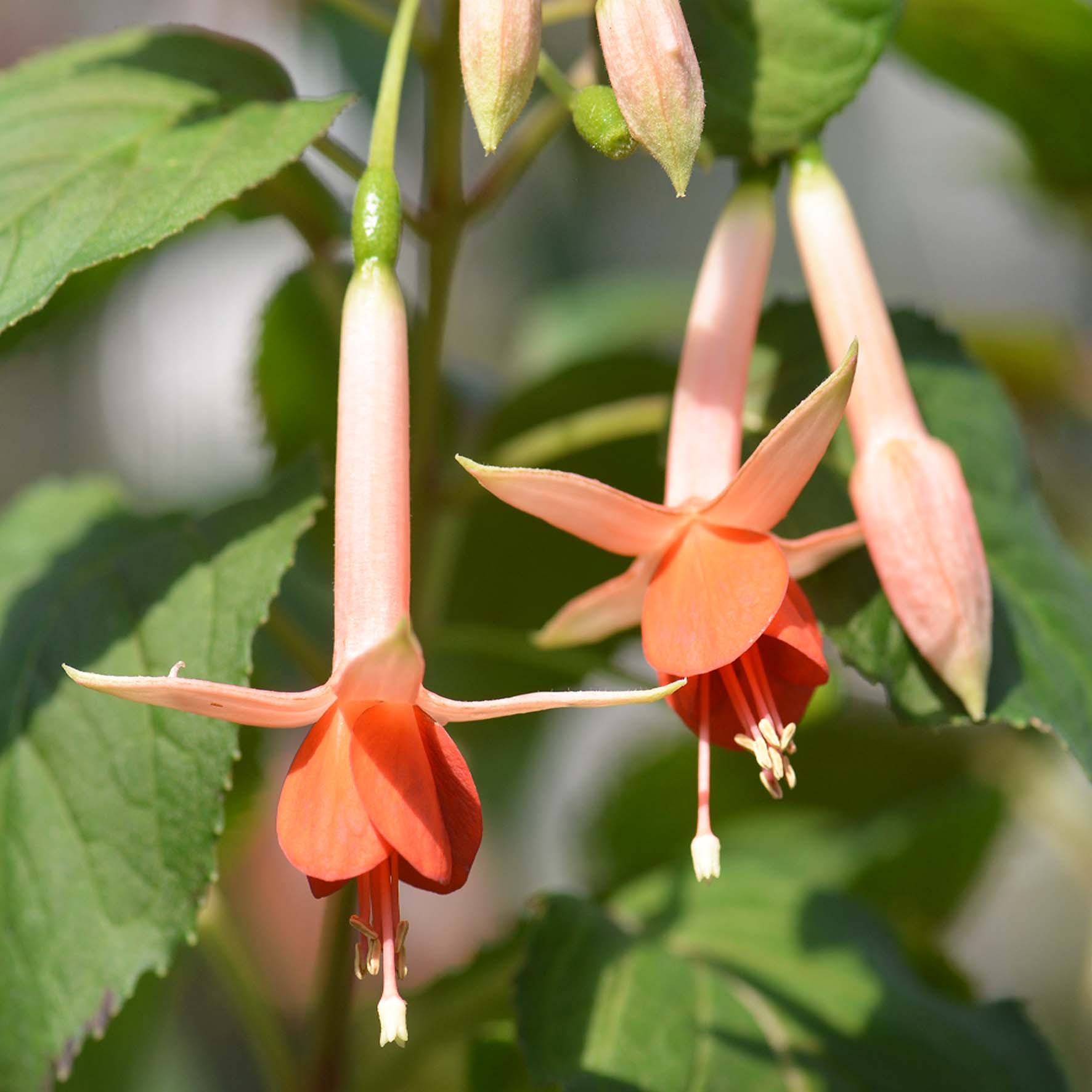 Fuchsie ‘Machu Picchu’ (De Graff, Nizozemsko 1977) je výrazná, vzpřímeně rostoucí odrůda s většími, sytě zelenými listy a nápadnými, podlouhlými, jednoduchými květy v teplém oranžovém odstínu. Díky svému neobvyklému zbarvení působí exoticky a přináší do sbírky fuchsií zajímavé oživení. Rostlina roste silně a tvoří hustý, dobře rozvětvený keřík, který dorůstá výšky kolem 40–60 cm. Kvete bohatě od června až do podzimu, přičemž květy se objevují po celé délce výhonů. Nejlépe prospívá v polostínu, v humózní, vlhčí, ale dobře propustné půdě. Je vhodná pro pěstování v květináčích i ve volné půdě během sezóny. ‘Machu Picchu’ potěší milovníky netradičních, teple zbarvených fuchsií. Dodáváme dobře prokořeněné rostliny v květináčích o průměru 9 cm.
