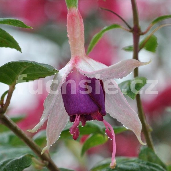 Fuchsie Murru 'von Fuchs' patří mezi dekorativní převislé kultivary s dlouhými, štíhlými květy. Bílé kalichy plynule přecházejí do poloplné fialové sukně, která rostlině dodává elegantní kontrast a jemný, romantický vzhled. Tvoří bohatě kvetoucí převisy vhodné pro závěsné nádoby, truhlíky či terasy s rozptýleným světlem. Vyžaduje pravidelnou zálivku a ochranu před prudkým sluncem.