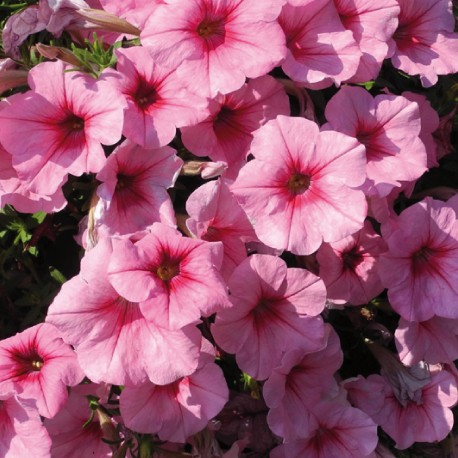 Převislá petúnie Pink Vein s velkými květy a jemným růžovým žilkováním je elegantní převislá rostlina, která vytváří bohaté kaskády květů a perfektně ozdobí truhlíky, závěsné koše i terasy. Žilkování květů dodává rostlině výrazný dekorativní efekt, který upoutá pohledy a dodává výsadbě živost. Díky převislému růstu a velkým květům je ideální pro pestré a efektní balkonové aranžmá.