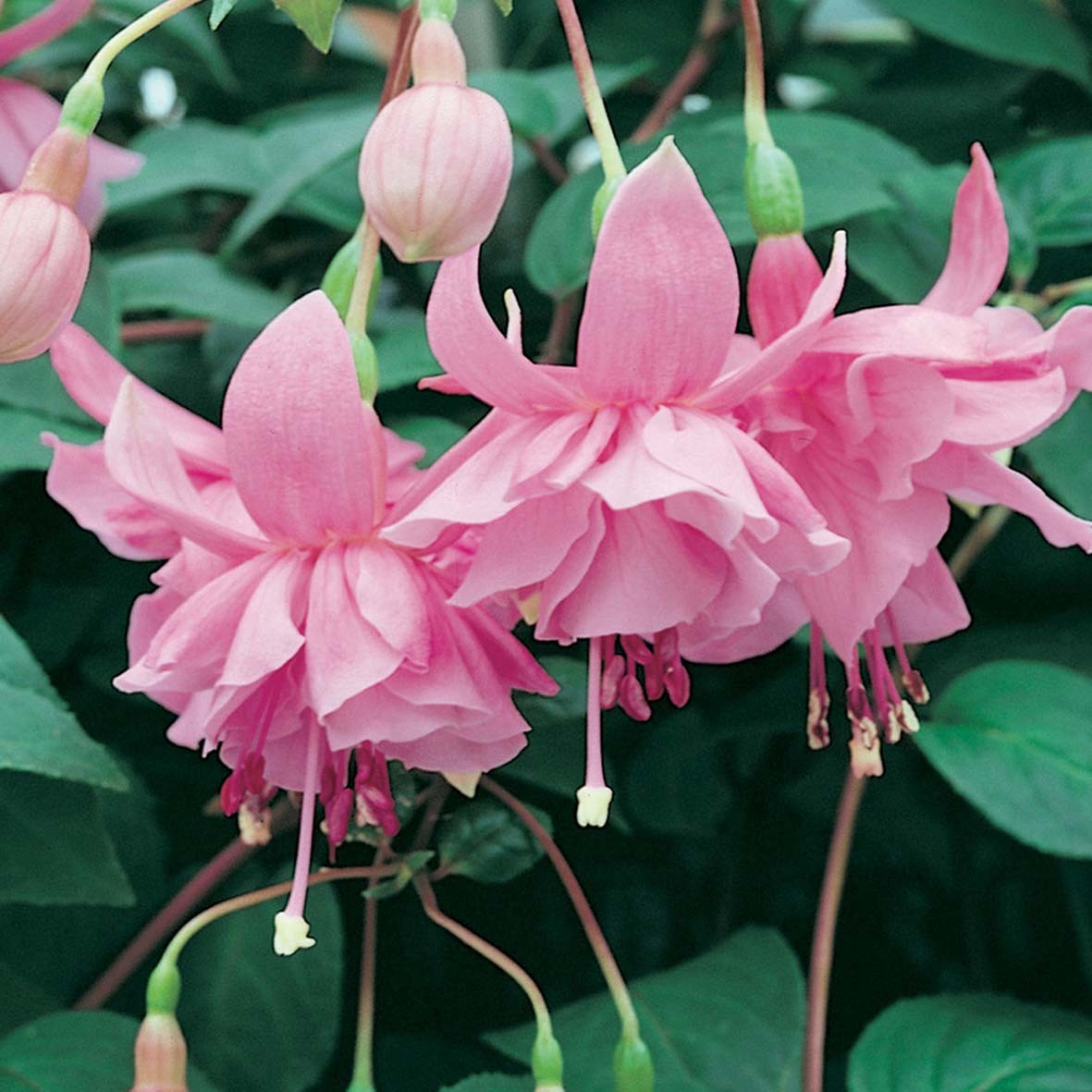 Pink Galore Fuchsie (Fuchsia La USA 1958) je historická americká odrůda s bohatými květy v jemných růžových plnými květy, kontrastujícími se sytě zelenými listy. Kvete od jara až do podzimu a vytváří elegantní květinový závoj vhodný do závěsných nádob, truhlíků či na terasy. Rostlina preferuje polostinné stanoviště chráněné před ostrým sluncem a pravidelnou zálivku. Díky jemnému a romantickému vzhledu vnese do prostoru svěžest, barvu a eleganci vhodnou pro moderní i klasické aranžmá. Historická americká odrůda je ceněná pro svou spolehlivost a dekorativní efekt.
