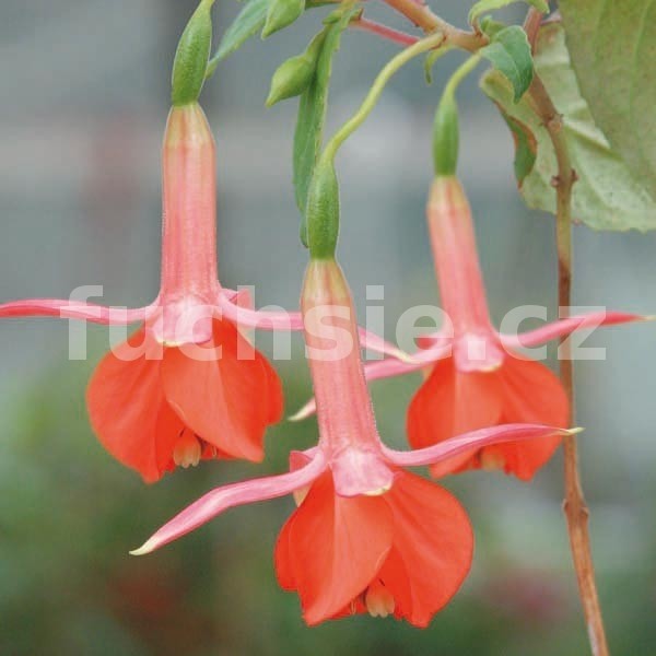 Fuchsie ‘Tangerina’ je elegantní a vzrůstná vzpřímená odrůda, která zaujme neobvyklými, dlouhými květy v sytě oranžovém odstínu – barvě, kterou mezi fuchsiemi jen tak nenajdete. Velké, zeleno-bronzové listy krásně kontrastují s květy a dodávají rostlině exotický vzhled. Díky svému pevnému růstu se skvěle hodí jak do nádob, tak do záhonů, kde může sloužit i jako výrazná solitéra. ‘Tangerina’ kvete po celé léto a je vyhledávanou sběratelskou odrůdou pro svůj neobvyklý barevný tón. Nejlépe prospívá na světlém, před poledním sluncem chráněném stanovišti s výživnou a dobře propustnou půdou. Pro zdravý růst a bohaté kvetení doporučujeme během vegetace pravidelně přihnojovat hnojivem s vyšším obsahem draslíku. Dodáváme jako dobře prokořeněnou rostlinu v květináči o průměru 9 cm.